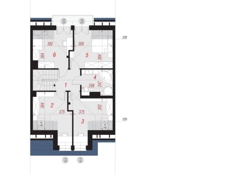 Dom ma do dyspozycji na parterze otwartą przestrzeń kuchnie / jadalnie i salon z wyjściem na taras i ogródek + przedpokój, łazienka / pomieszczenie gospodarcze, zaś na piętrze 4 ustawie duże pokoje, holl i obszerna łazienka.